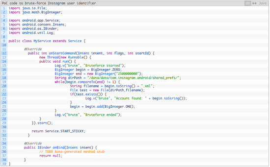 Исследователь даже написал скрипт, который работает в фоновом режиме и облегчает атаку, — в случае его использования вредоносное приложение вовсе не нужно держать постоянно запущенным. Как только верный Instagram ID будет найден, и злоумышленник узнает корректный путь к файлу, во многих случаях он также сможет раскрыть настоящую личность своей жертвы, а часто, узнать даже номер ее телефона.