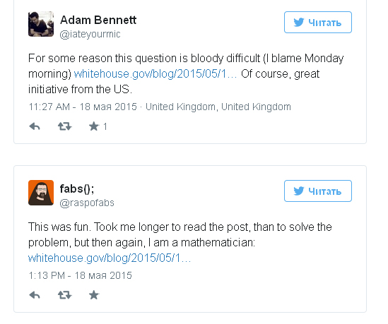 Заместитель технического директора администрации президента США Эд Фелтен (Ed Felten) опубликовал своё первое обращение, задав читателям блога Белого дома головоломку из сферы теории игр. На запись Фелтона обратило внимание издание «Медуза».