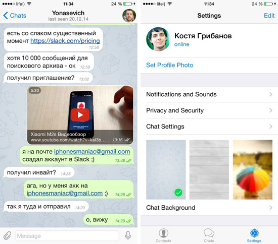 Самое слабенькое приложение здесь — Telegram. Это обычная переписка между пользователями текстом или смайликами. Никакого интерактива и дополнительных развлекательных функций. Вместо них есть возможность создания секретного чата, который нигде не сохраняется на серверах и удаляется из телефонов через заданное время. Ах да, принято считать, что это суперзащищенный мессенджер, для достижения безопасности в котором используется криптографический протокол MTProto. Кажется, что за вами следят и тщательно фиксируют каждое действие? Тогда Telegram — ваш выбор, для всех остальных есть более продвинутые онлайн-мессенджеры.