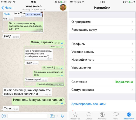 WhatsApp до недавних пор был моим основным мессенджеров по одной простой причине. Им пользовались большинство моих друзей в телефонной книге. Здесь можно вести переписку, отправлять местоположение (функция доступна везде, кроме Skype), совершать звонки, но нет развлекательных функций. Совсем и полностью. Нехорошо для онлайн-мессенджера.