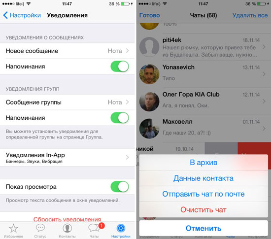 Похожая ситуация у WhatsApp и Viber. К их классическим интерфейсам не придется привыкать, заучивая команды перехода между чатами. WhatsApp в последнем серьезном обновлении почему-то стал таким же бело-серым, как Telegram, и практически полностью избавился от ярких красок в оформлении. Viber наоборот получил правильный апдейт.