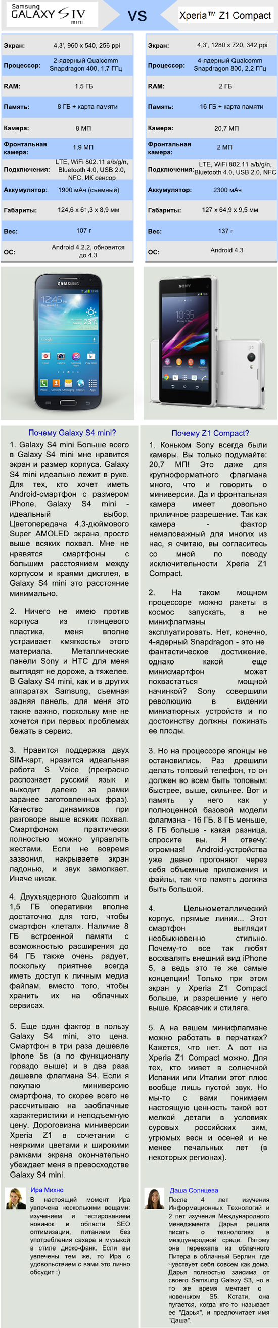Битва смартфонов: Samsung Galaxy S4 mini против Sony Xperia Z1 Compact