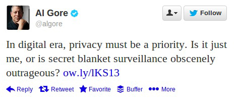 Эл Гор, бывший вице-президент США: «В цифровую эпоху конфиденциальность информации должна быть первым приоритетом. Только мне кажется, что тайная слежка до неприличия возмутительна?»
