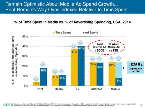 В отчете финансового аналитика Мэри Микер, посвященном трендам в интернете, это расхождение описывается как «25-миллиардная возможность». Эксперт прогнозирует начало большой гонки, и, если Микер права, то вскоре экраны смартфонов будут практически залеплены рекламными объявлениями, всплывающими окнами и видеороликами. Именно поэтому решение реализовать в iOS 9 возможность блокировать рекламу стало камнем преткновения. Apple нанесет ущерб не только своему главному конкуренту, компании Google, но также тем, чей заработок непосредственно зависит от интернет-рекламы.