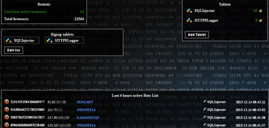 Очень необычный ботнет удалось обнаружить Брайану Кребсу. Вредоносная программа распространялась под видом расширения для Firefox. За полгода с мая 2013-го расширение установили как минимум 12 500 раз, если верить скриншоту административной панели.