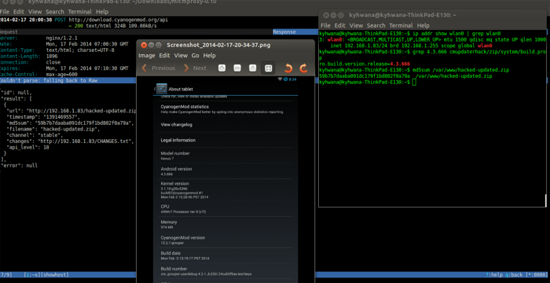 Как следует из сообщения в блоге «Kyh’s blog», посвященном вопросам информационной безопасности, в механизме обновления CyanogenMod (открытая прошивка устройств на базе Android) была обнаружена уязвимость, позволяющая осуществить MITM-атаку.