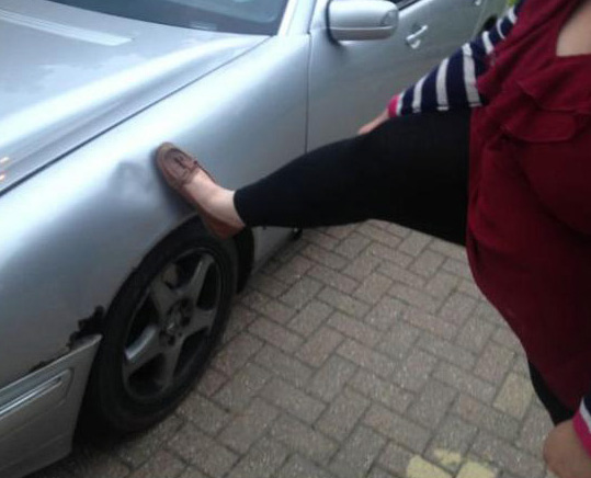 Британец рекламирует "убитый" Mercedes пышными формами жены