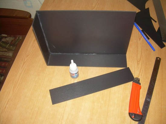 Корпус сделан из вспененного пластика ПВХ толщиной 3мм, склеен цианокрилатным клеем.