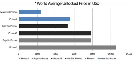 По подсчетам аналитика, сейчас стоимость каждого из устройств Apple, будь то iPhone 4, 4S или 5, выше, чем средняя по рынку. Такая ситуация негативно сказывается на продажах устройств и доле рынка.