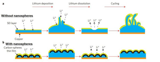 Литий-анодные аккумуляторы хороши тем, что спустя даже 150 циклов они будут эффективными на 99 процентов. Однако при взаимодействии анода с электролитом он может взорваться, также после длительной эксплуатации анод может деформироваться, поэтому между анодом и электролитом ученые использовали слой углерода, который решил все проблемы.