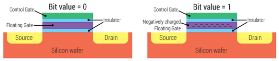 Существует два вида или, правильнее сказать, уровня памяти, первый может принимать лишь два значения: когда плавающий затвор не имеет положительного заряда, и наоборот, имеет. В случае, если имеет, то говорят, что транзистор хранит в себе один бит информации, и, соответственно, если не имеет заряда, то ничего в себе он не хранит. Отсюда получаем два возможных значения: 0 и 1. А вот мультиуровневая память может принимать множество различных значений, это позволило хранить больше памяти при том же объеме, однако это и создало ряд проблем, включая большое количество ошибок в момент чтения/записи данных из-за слишком маленькой разницы между уровнями.