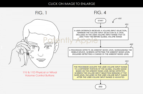 В патенте говорится, что когда пользователь переходит из тихой комнаты в шумную обстановку, он обычно увеличивает уровень громкости устройства. Разработка Apple позволит смартфону фиксировать изменения уровня окружающего шума и соответствующим образом менять громкость.