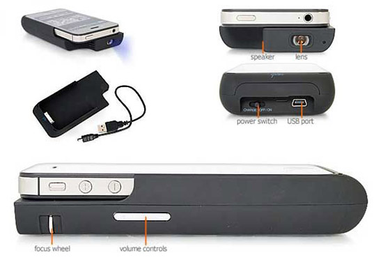 Этот аксессуар под названием Pico Genie A100 создали в компании Firebox, которая специализируется на производстве гаджетов подобного рода. Pico Genie A100 является чехлом со встроенным пико-проектором и дополнительным аккумулятором. Как говорят разработчики, благодаря этому удобно поделиться презентацией, картинками и видео с коллегами или друзьями.