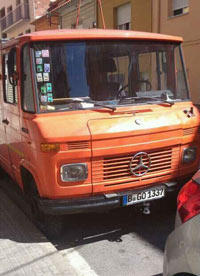 На фото ниже — фотография микроавтобуса, которую сделал на мобильный телефон местный мальчик. На крыше автомобиля установлены солнечные панели и другое оборудование, а салон напичкан электроникой. Микроавтобус стоит под немецкими номерами.