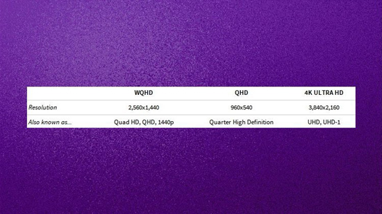 Обратите внимание, что в таблице «QHD» (все буквы большие) указано в двух качествах — дополнительного термина, соответствующего WQHD, и Quarter High Definition (qHD). Поэтому порой, в случаях написания всех букв заглавными, бывает трудно понять, о каком из двух «QHD» идет речь — в значении «qHD» (960 x 540 пикселей) или «WQHD» (2560 x 1440 пикселей). Остается лишь догадываться по контексту.
