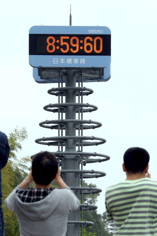 Жители города Тамура (Япония) фотографируют високосную секунду, которую добавили 1 июля 2012 года