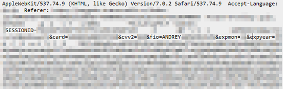 В нем было все. Буквально все, что проходит через платежный шлюз: номер заказа, номер карты, CVV2, ФИО, год и месяц до которого она действительна. За полчаса работы скрипта в дампе оказалось несколько сотен реальных банковских карт и данных об их владельцах.