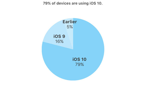 К данному моменту на iOS 10 работает около 80% всех действующих «яблочных» устройств. На iOS 9 остается лишь 16% девайсов и всего 5% используют более ранние версии данной платформы.