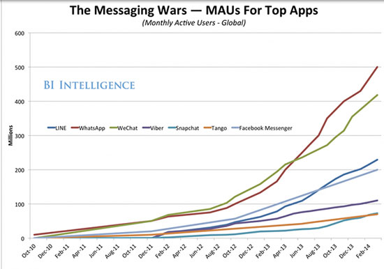 -У них огромные показатели вовлеченности пользователя. Если в среднем время пользования мобильными приложениями за 2013 год выросло на 115%, то для мессенджеров этот показатель прибавил 203%.