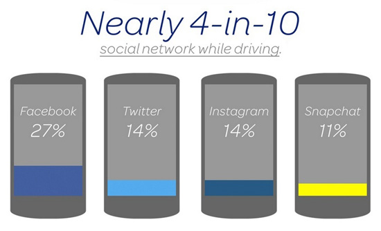 Опрос проводился среди жителей США в возрасте от 16 до 65 лет, которые пользуются смартфонами и ездят на автомобиле каждый день. Всего было опрошено 2067 человек. Выяснилось, что 40% водителей сидят в социальных сетях, 28% серфят в интернете, а 10% и вовсе совершают видеозвонки.
