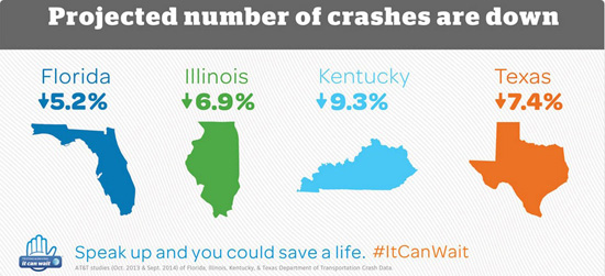 Совместно с департаментами транспорта штатов Флорида, Техас, Кентукки и Иллинойс было проведено исследование, которое показало положительное влияние кампании «It Can Wait» на безопасность на дорогах. Количество аварий в этих штатах сократилось на 5-10 процентов.