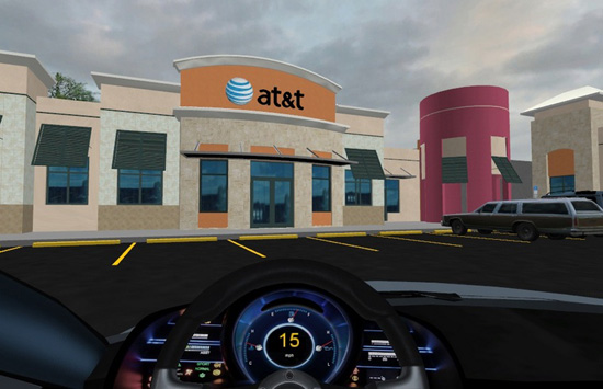 Наша задача – следить за дорогой, не отвлекаясь на сообщения. Кстати, местные водители не особо соблюдают правила (например, разворачиваются через «двойную сплошную»), что придает симулятору еще больше реалистичности. В случае успешного выполнения задания приезжаем в офис AT&T :)