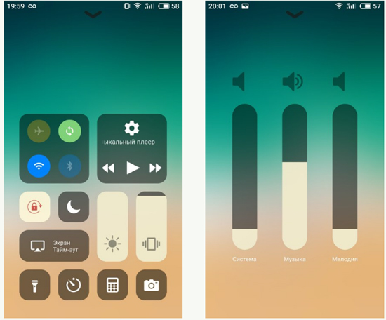 Однако с точки зрения функциональности мы имеем дело с практически полной копией оригинальной шторки из iOS. Долгим нажатием — как и в оригинальном Центре — можно вызвать дополнительное меню.