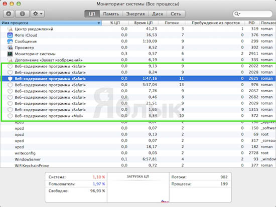 Окна и вкладки интернет-браузеров можно отнести к разряду самых «прожорливых» процессов на компьютере. Причем, содержимое вкладок оказывает существенное клияние на работу процессора Вашего Mac. Особенно это заметно, если на Вашем компьютере установлен Flash-плагин.