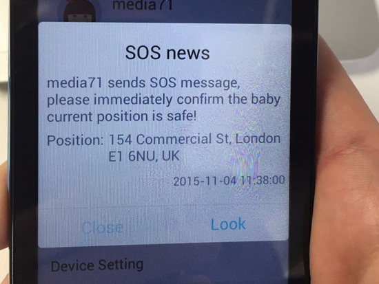 На смартфон родителя приходит уведомление о сигнале бедствия и положении ребенка на карте в этот момент