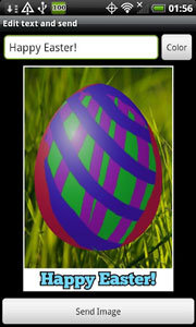 Добавьте на пасхальное яйцо цветные украшения, а затем персональное поздравление и отправьте вашим друзьям и коллегам. Вы можете также поделиться через Facebook или установить картинку как обои на рабочем столе.