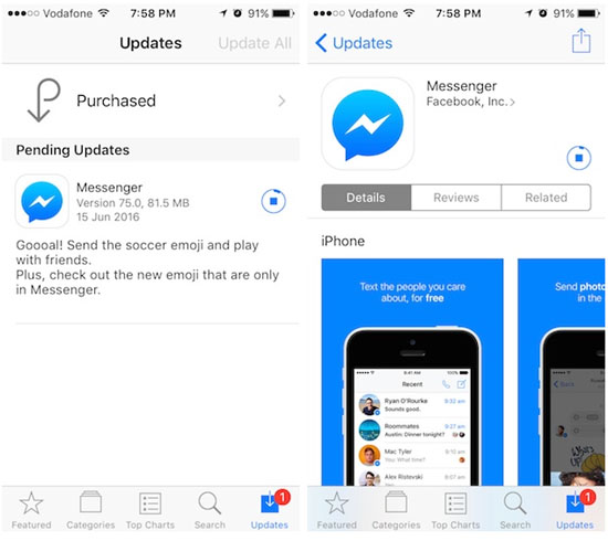 Если перезагрузка смартфона тоже не помогла, то зайди в App Store → Updates (Обновления) и тапни по приложению, которое зависло на установке. Просто нажми на иконку программы в левом углу и проверь главный экран — в одном из случаев мне помог именно этот способ.