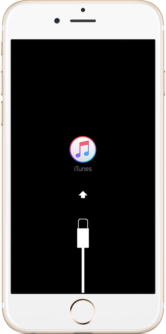 2. После этого выполни полный перезапуск — зажмите кнопки «Home» и выключения. Не отпускай их, даже когда увидишь логотип Apple, жди экрана восстановления.