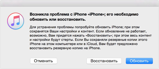 3. После этого в iTunes появится окно, где будет предложение восстановить iPhone