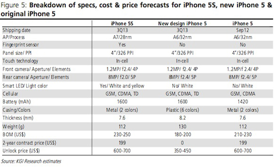 iPhone: Apple представит iPhone 5S и обновленный iPhone 5 в июне или июле этого года. iPhone 5S будет очень похож на текущий iPhone 5, но в нем будет обновлено железо: чип A7 с повышенной производительностью, датчик отпечатков пальцев и улучшенная камера (диафрагма F2.0 и умная светодиодная вспышка). Дешевый iPhone будет во многом похож на iPhone 5, только немного толще (8,2 мм против 7,6 мм текущего iPhone 5), пластиковый корпус и он будет доступен в шести цветах.