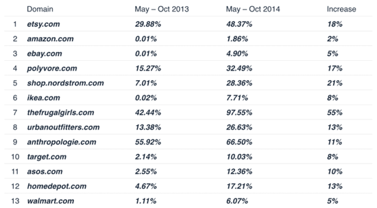 Трафик самого Pinterest практически удвоился за период с июня 2013 по ноябрь 2014 года.