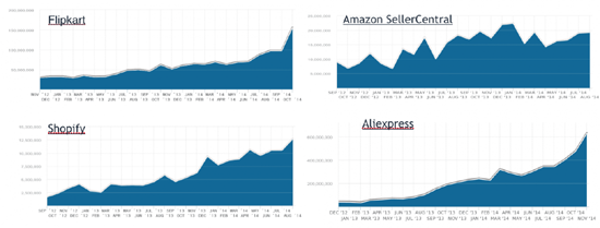 Сфера интернет-торговли находится на небывалом подъеме, считают специалисты SimilarWeb. Судя по собранным данным, трафик таких платформ, как Flipkart, Amazon Seller Central, Shopify и AliExpress растет.