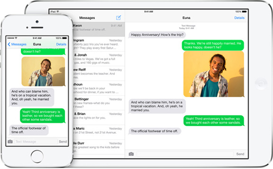 Технология SMS Continuity, анонсированная в качестве одной из ключевых особенностей новых операционных систем Apple, не увидела свет с выходом «восьмерки». Судя по всему, функция для передачи коротких сообщений с iPhone на iPad и Mac дебютирует на устройствах вместе с релизом iOS 8.1 и OS X Yosemite.