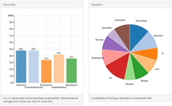 Помимо логичных следствий вроде возраста, пола, образования, любимых фильмов и музыки, алгоритм умеет «додумывать» более глубокие характеристики. К примеру, предположить, насколько пользователь открыт, самокритичен, уверен в себе. Любит ли он соревноваться или предпочитает работать в команде. Импульсивен или организован. Консервативен и традиционен или либерален и креативен.