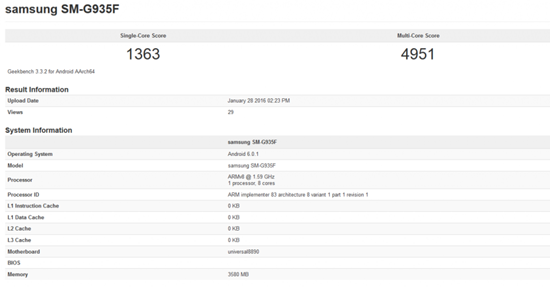 В некоторые модели Galaxy S7 будут установлены процессоры Exynos 8890 собственной разработки Samsung, а в другие — чипсеты Qualcomm Snapdragon 820. В прошлом году Samsung отказалась от использования Snapdragon 810 в Galaxy S6 из-за проблем с перегревом, но в этом году корейская компания производит Snapdragon 820 на своих фабриках, поэтому уверена, что процессоры Qualcomm получились не такими «жаркими». Судя по Geekbench, производительность Exynos 8890 примерно на 30% выше, чем у Exynos 7420, который используется в серии Galaxy S6.
