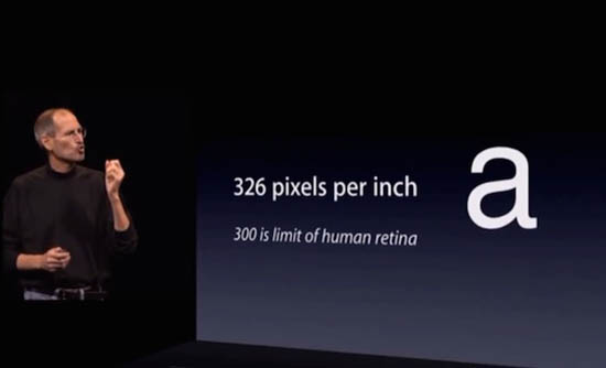 С одной стороны, произошло элементарное удвоение количества пикселей по вертикали и горизонтали, до уровня 640 × 960. С другой – форм-фактор iPhone не изменился и размеры экрана не увеличились, что означало мгновенный рост с 163 ppi до 326 ppi и это была заявка на победу. На презентации далеко не просто так обратили внимание на ограничения, заложенные матушкой-природой в систему зрения человека. Если вы не можете увидеть дефект картинки, то она всегда будет отличной и очень четкой – примерно такую мысль поселили в головы миллионов.