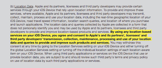 По умолчанию, без подключения к Интернету, пользователям iOS доступен «декоративный» набор функций, а все мало-мальски сложные операции выполняются где-то в облаках. В официальном документе используются термины «дочерние структуры» и «агенты», что Райан Кало (Ryan Calo), доцент юрфака Университета Вашингтона, считает универсальной маскировкой. Ему вторит Лиор Страхилевиц (Lior Strahilevitz) из Чикагского университета – при текущем положении дел вы не можете напрямую обвинить Apple в том, что она передает ваши персональные данные третьей стороне.