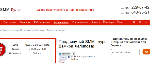 Недавно я обнаружил, что у нас в Киеве существует «взрослая» школа SM маркетологов. О том, что там занимаются серьёзным бизнесом, свидетельствует, например, сотрудничество с Дамиром Халиловым. Дамир, без преувеличения, признанный мастер и ветеран SMM.