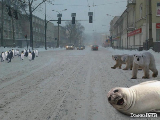 Негода, яка накрила Західну Україну від вечора четверга, 14 березня, спровокувала в інтернеті появу нових фотожаб, мемів і демотиваторів.