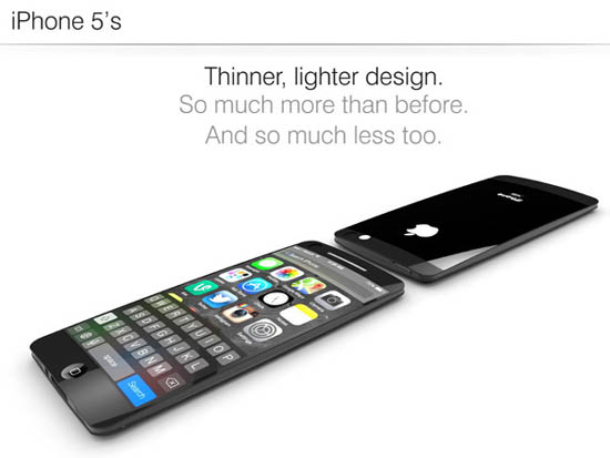 Дизайнер Альваро Толедо разработал концепт смартфона iPhone 5S, основным отличием которого от оригинальных аппаратов Apple является форма корпуса, более тонкого по краям. Кроме того, Толедо практически лишил устройство рамки вокруг экрана и увеличил размер динамика, переместив объектив фронтальной камеры в сторону.