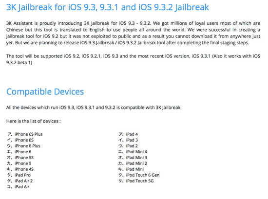 В Интернет запущен интернет-ресурс Chinese 3K Assistant, авторы которого объявили о создании джейлбрейка iOS 9.3.1 и 9.3.2 для всех совместимых устройств. Странно то, что во время загрузки эксплоита появляется ошибка скачивания.