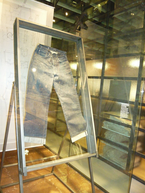 Эти джинсы нашли в одной из шахт Калифорнии, в пустыне Мохавью. Джинсы испачканы воском от свечи, которой освещал себе путь в шахте бывший хозяин джинсов. Из-за этого в джинсах есть две дырочки.