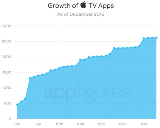 Блог AppFigures опубликовал статистику по новому сегменту App Store — магазину приложений для приставки Apple TV четвертого поколения. Похоже, дела у него идут неплохо.