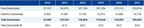 Популярность продолжают набирать покупки внутри приложений. Согласно прогнозу, они составят 17% дохода приложений в этом году, и в ближайшие пять лет их доля будет только расти. К 2017 году общий доход от приложений ожидается на уровне $76 млрд., из них плата за приложения составит 37,8%, покупки внутри приложений принесут 48,2%, а реклама 14%.
