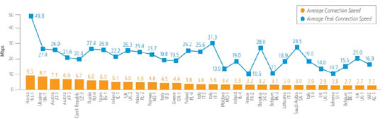 Самую большую скорость доступа имеют жители Южной Кореи: там в среднем каждый пользователь загружает сайты на скорости 22,1 Мбит/сек. В прошлом году этот параметр был на 50%. Остальные страны демонстрируют не такой большой рост – примерно 29% глобально. Но были и пики, например, в Непале скорость доступа в интернет выросла на 76%. Правда, в абсолютных величинах она достигла всего 3,6 Мбит/сек. А самая маленькая скорость доступа в интернет у жителей Намибии. Там провайдеры обеспечивают всего 1,1 Мбит/сек, и ежегодно этот параметр растет на 0,5%.