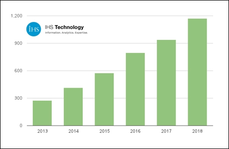 По оценкам компании IHS Technology, в 2013 году по всему миру было поставлено приблизительно 275 млн сотовых аппаратов, поддерживающих технологию NFC. Это на 128% больше по сравнению с 2012-м, когда отгрузки таких «трубок» составляли 120 млн штук.